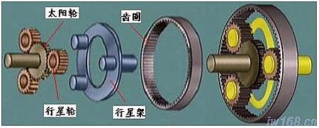 在包含行星齒輪的齒輪系統中,情形就不同了。由于存在行星架,也就是說,可以有三條轉動軸允許動力輸入/輸出,還可以用離合器或制動器之類的手段,在需要的時候限制其中一條軸的轉動,剩下兩條軸進行傳動,這樣一來,互相嚙合的齒輪之間的關系就可以有多種組合: