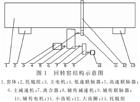 回轉窯結構由筒體1、支撐裝置2、13、傳動裝置3、5、(10、9、8、7)、6、4、11、12窯尾及窯頭密封、窯頭罩組成。其主要特點: