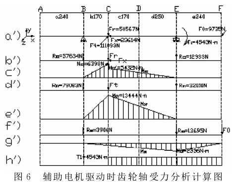 輔助電機驅動時齒輪軸受力分析計算結果如圖6所示。