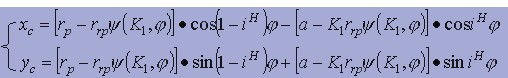 (4) 可見,以上得到的擺線齒廓曲線可以用來設計出完全與少齒差行星傳動一樣的機構。根據圖Fig.14-2的齒廓形成原理,加工擺線輪時模擬圖中關系確定產形參數進行展成法加工,可以得到符合上述方程組的齒廓曲線。