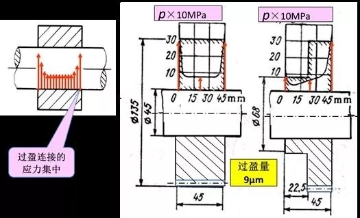 圖7 過盈連接的應力集中和接觸應力分布