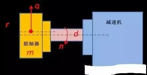 旋轉零件的靜平衡或動平衡不好,將會使旋轉零件產生離心力,增加了軸的附加應力,從而影響軸的強度。圖為半聯軸器——軸——減速機的配置關系,圖中半聯軸器質量有點偏心。