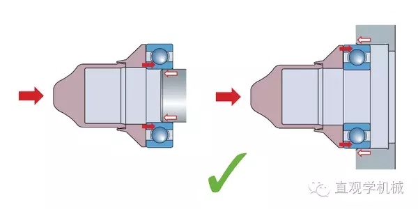 安裝內圈過盈配合的軸承時,不能通過外圈和滾動體把力傳遞給內圈。這會把軸承滾道和滾動體表面敲壞,使軸承在運轉時產生噪音并提前損壞。正確的方法應該用套筒直接把力作用在內圈端面上