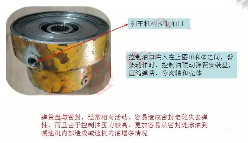 2、液壓油竄到回轉減速機內,造成油增多,油增多又分兩種情況: