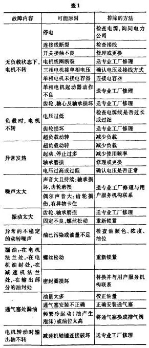 3 常用減速機(jī)故障原因與排除(見(jiàn)表1)