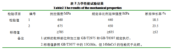 該輸出軸的化學成分檢驗結果顯示,除元素Mn含量略低于EN10084-1998中的規定值外,其他元素均符合EN10084-2008中規定的要求。