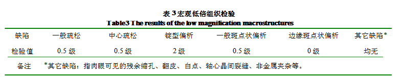 截取軸中非斷口的橫截面進行宏觀低倍組織檢驗,結果如表3: