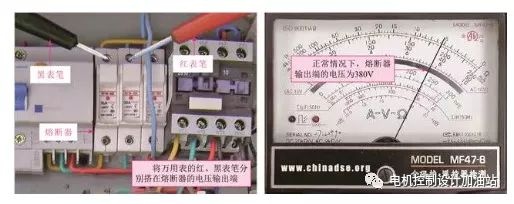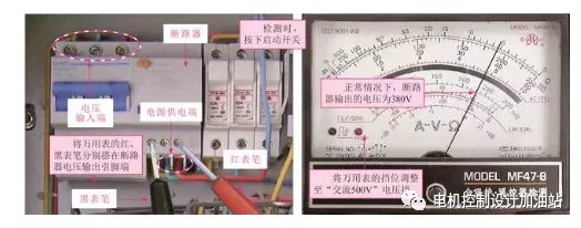 將萬用表的兩只表筆任意搭在斷路器的供電端上,當起動開關處于斷開狀態時,電壓應為0;當起動開關處于閉合狀態時,電壓應為交流38V。