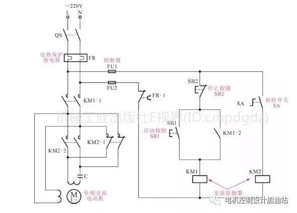 單相交流電動機正反轉控制電路是指通過改變電動機繞組的電源相序來實現電動機的正反轉工作狀態。當按下起動按鈕,單相交流電動機開始正向運轉;當調整旋轉開關后,單相交流電動機便可反向運轉。