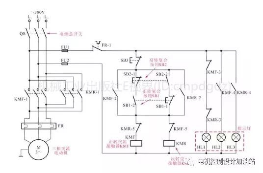 正反轉控制線路圖主要是由起動按鈕SB1、停止按鈕SB2、旋轉開關SA、過熱保護繼電器FR、交流接觸器KM1、KM2等構成。