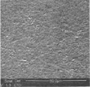 從失效齒輪輪齒部位取樣拋光.經4%的硝酸酒精溶液腐蝕后,在Olympus金相顯微鏡下進行觀察。試樣心部組織為低碳板條回火馬氏體及少量鐵素體(圖4)。滲碳層組織為高碳針狀回火馬氏體及少量殘余奧氏體,馬氏體針葉略微粗大(圖5)。按照JB/T6141.3—1992《重載齒輪滲碳金相檢驗》標準評定,試樣心部組織為2~3級,滲碳層馬氏體組織為4級,符合要求。但試樣滲碳層中有?較細的白色網狀碳化物析出(圖6),按照JB/T6141.3—1992《重載齒輪滲碳金相檢驗》標準評定,試樣滲碳層碳化物為4.5級,不符合標準規定要求。經掃描電鏡觀察,白色網狀碳化物在滲碳層表面附近呈現連續網狀(圖7)。至距表面1?mm處,白色網狀碳化物基本消失(圖8)。較細的白色網狀碳化物是齒輪在滲碳過程中由于冷卻速度較慢,奧氏體沿晶界析出細網狀二次滲碳體。這種白色網狀碳化物會削弱晶粒之間的結合強度,降低齒輪的抗接觸疲勞性能。