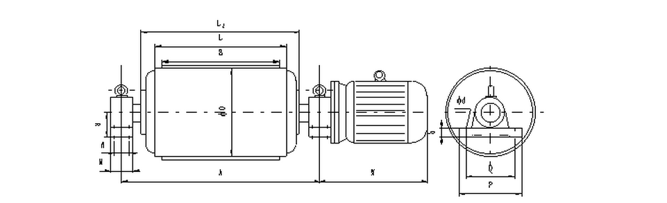 5.6 內(nèi)置式電動(dòng)滾筒外形安裝圖: