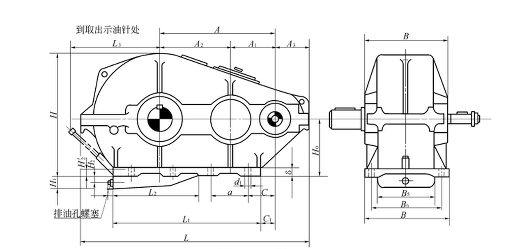 | 型號 | 中心距 | 中心距 | 最大外形尺寸 | 軸端尺寸 | l1 | l2 | l3 | B4 | H1 | b | 安裝尺寸 |