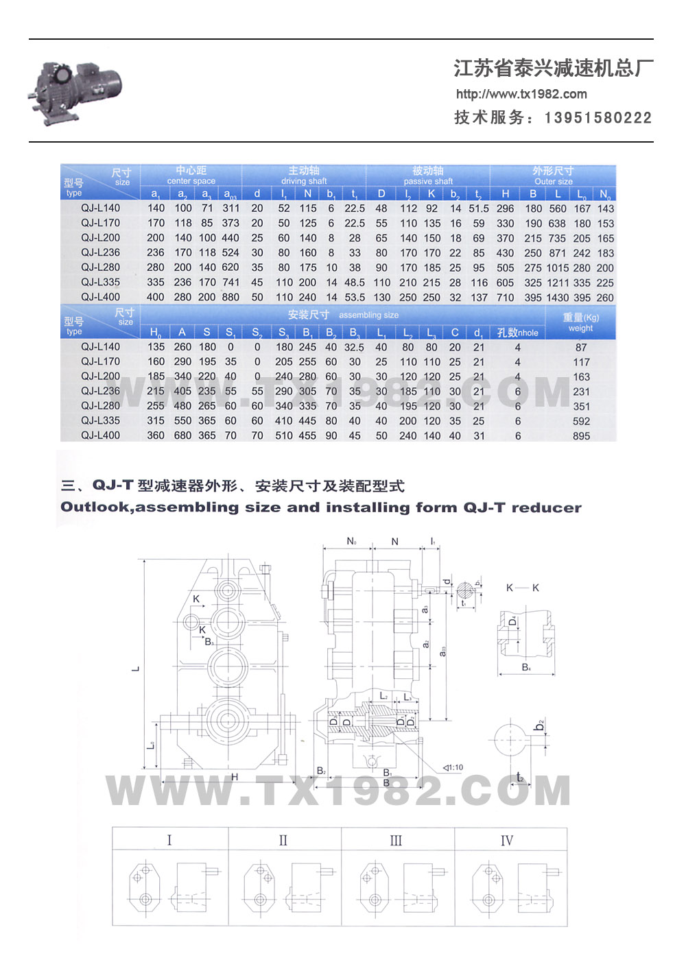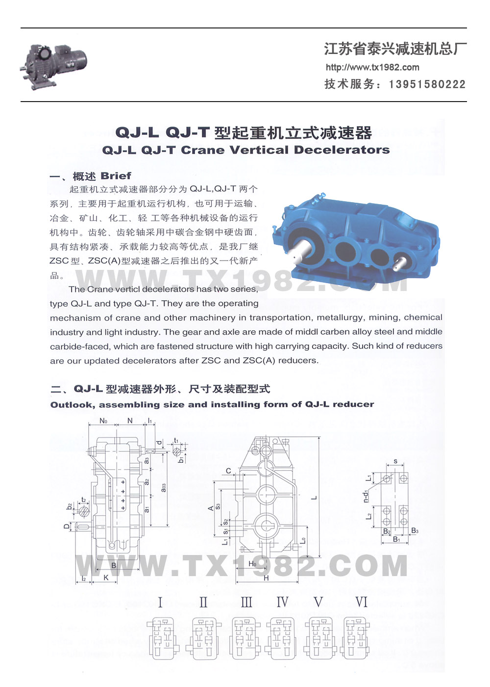 QJ-L型減速器裝配型式為I-VI六種,見圖